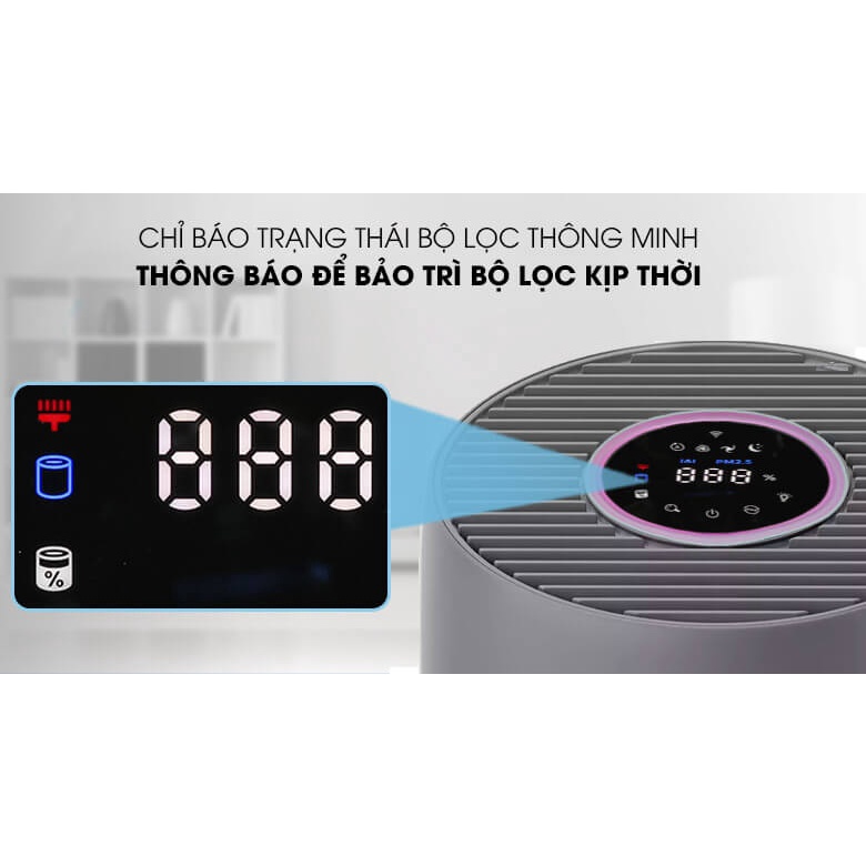 Máy lọc không khí sẽ cảnh báo và tự động khóa khi đến hạn bộ lọc cần thay thế, máy sẽ bền bỉ và lọc không khí hiệu quả hơn.