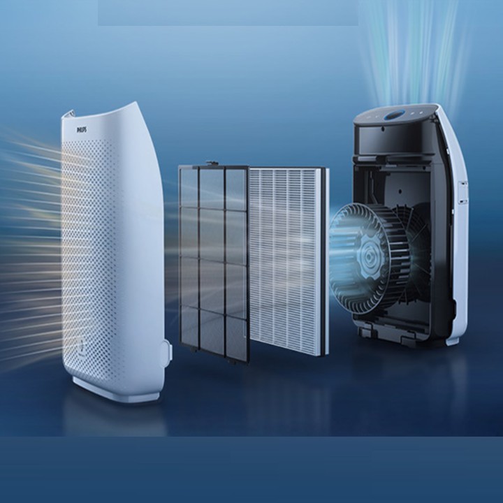 - Máy lọc không khí Philips làm sạch các phòng có diện tích lên tới 31 m2 và loại bỏ hiệu quả các chất gây dị ứng, khói, bụi mịn, khí, mùi, vi khuẩn và virus.