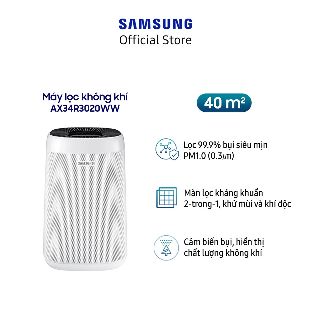 Thiết Bị Điện Gia Dụng > Thiết bị điện gia dụng nhỏ > Thiết bị xử lí không khí > Máy lọc không khí || [Mã ELHA22 giảm 5% đơn 300K] Máy lọc không khí Samsung AX34R3020WW/SV (34m2)Còn hàng
