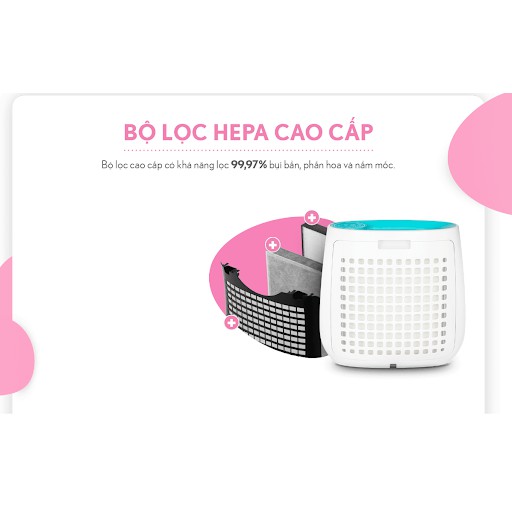 - Loại bỏ được bụi mịn PM 2.5 với bộ lọc HEPA