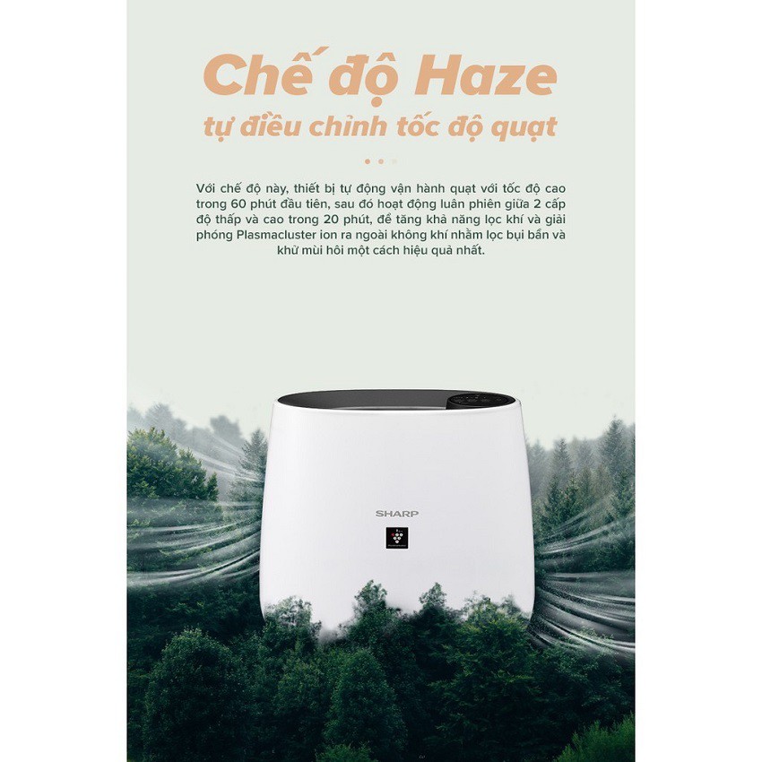 Với chế độ HAZE, thiết bị tự động vận hành quạt với tốc độ cao trong 60 phút đầu tiên, sau đó hoạt động luân phiên giữa hai cấp độ thấp và cao trong vòng 20 phút, để tăng khả năng lọc khí và thải phóng Plasmacluster ion ra ngoài không khí nhằm lọc bụi bẩn và khử mùi hôi một cách hiệu quả nhất.