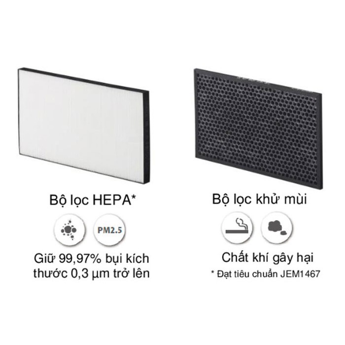 Bộ lọc khử mùi: Thu giữ các phân tử khói và khí gây mùi khó chịu, độc hại (đạt tiêu chuẩn JEM1467)