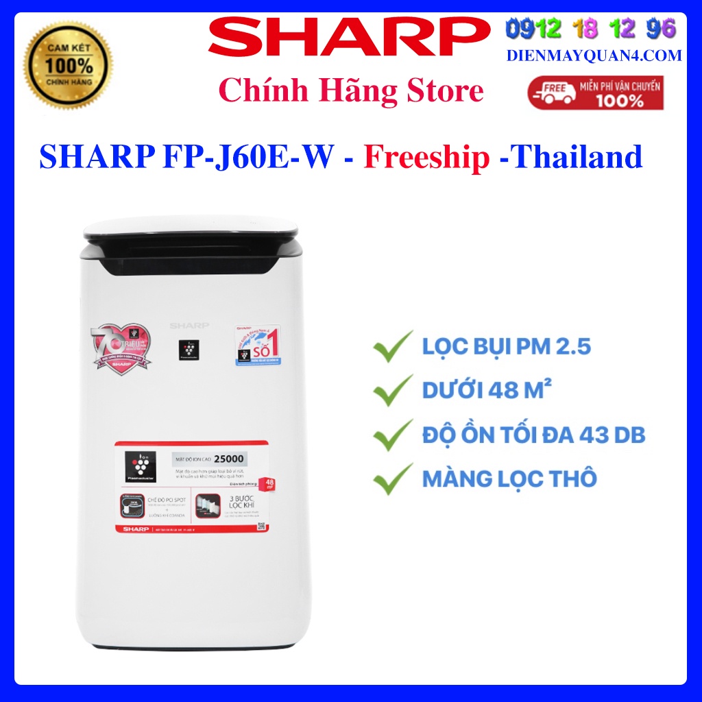Thiết Bị Điện Gia Dụng > Thiết bị điện gia dụng nhỏ > Thiết bị xử lí không khí > Máy lọc không khí || Máy lọc không khí Sharp FP-J60E-W, Bảo hành chính hãng 12 tháng.Còn hàng