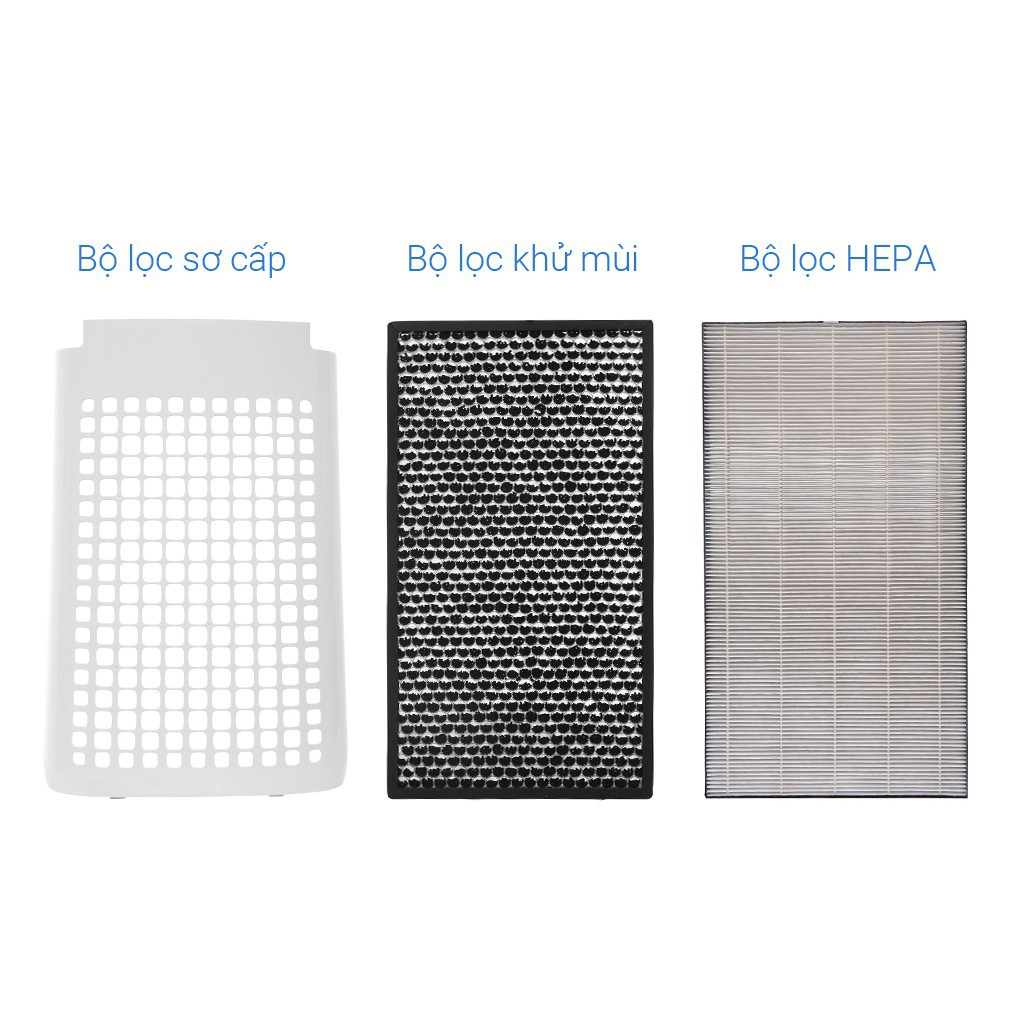 Lọc được 99.97% bụi mịn PM 2.5, bụi thường và lọc khử mùi nhờ 3 lớp lọc: lọc thô, lọc mùi than hoạt tính, lọc Hepa.