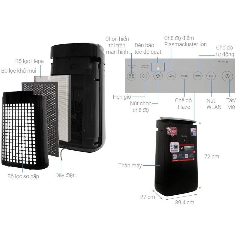 Thiết Bị Điện Gia Dụng > Thiết bị điện gia dụng nhỏ > Thiết bị xử lí không khí > Máy lọc không khí || [Mã ELHA22 giảm 5% đơn 300K] Máy lọc không khí Sharp FP-J80EV-HCòn hàng