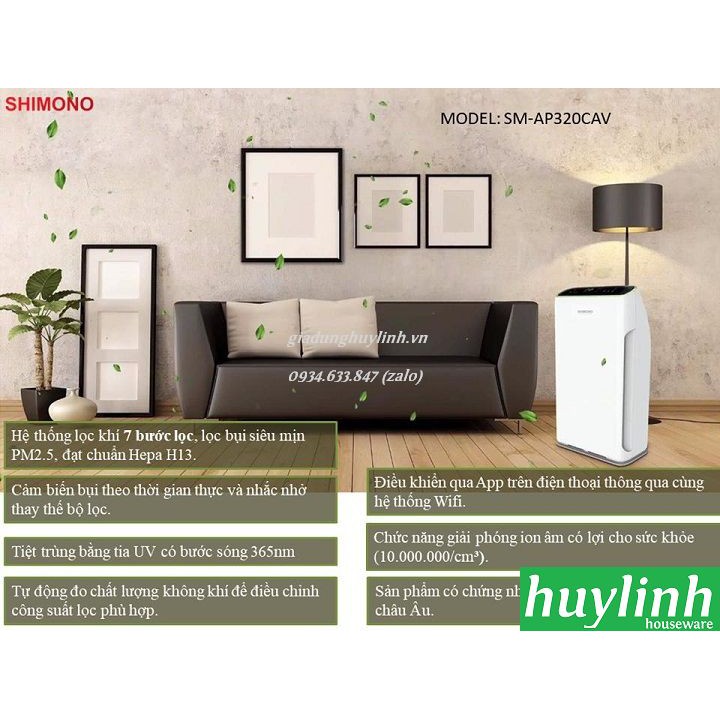 [Mã ELHAMS5 giảm 6% đơn 300K] Máy lọc không khí Shimono SM-AP320CAV - 50m2 - Smartphone