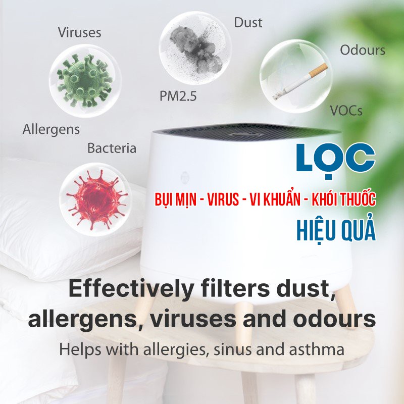 • Lọc bụi mịn, vi khuẩn, khói thuốc tới 99.95%