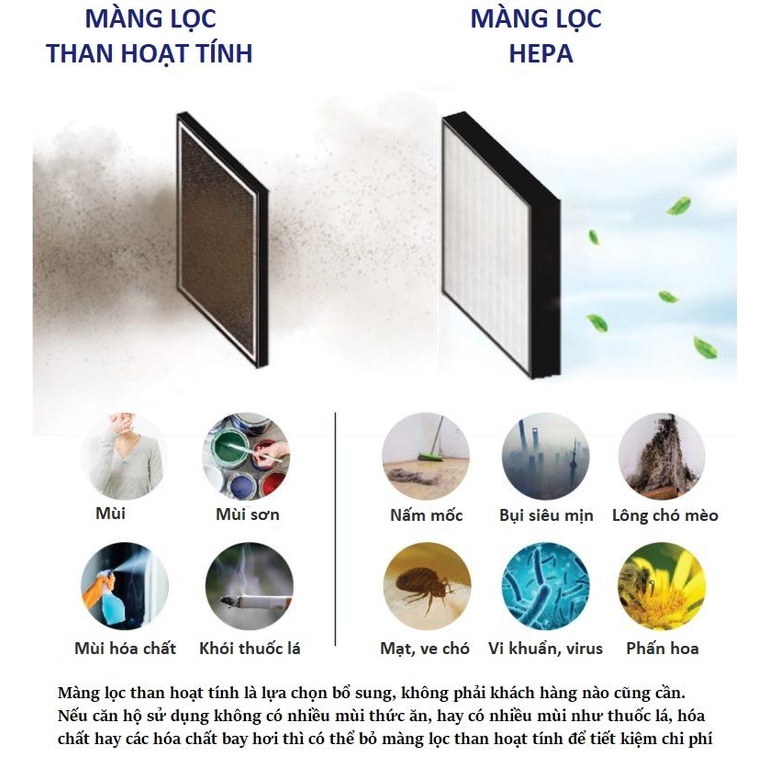 • Lọc bụi mịn, vi khuẩn, khói thuốc tới 99.95%