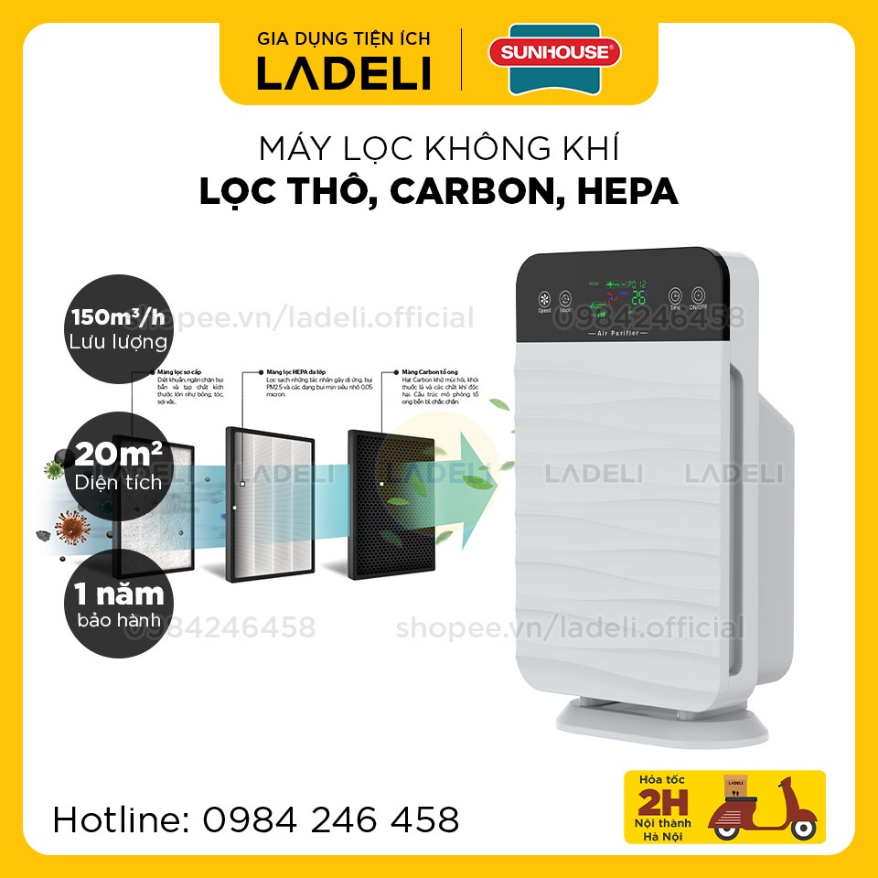 [Mã 155ELSALE giảm 7% đơn 300K] Máy lọc không khí SUNHOUSE SHD-15AP9715 cho phòng 20m2