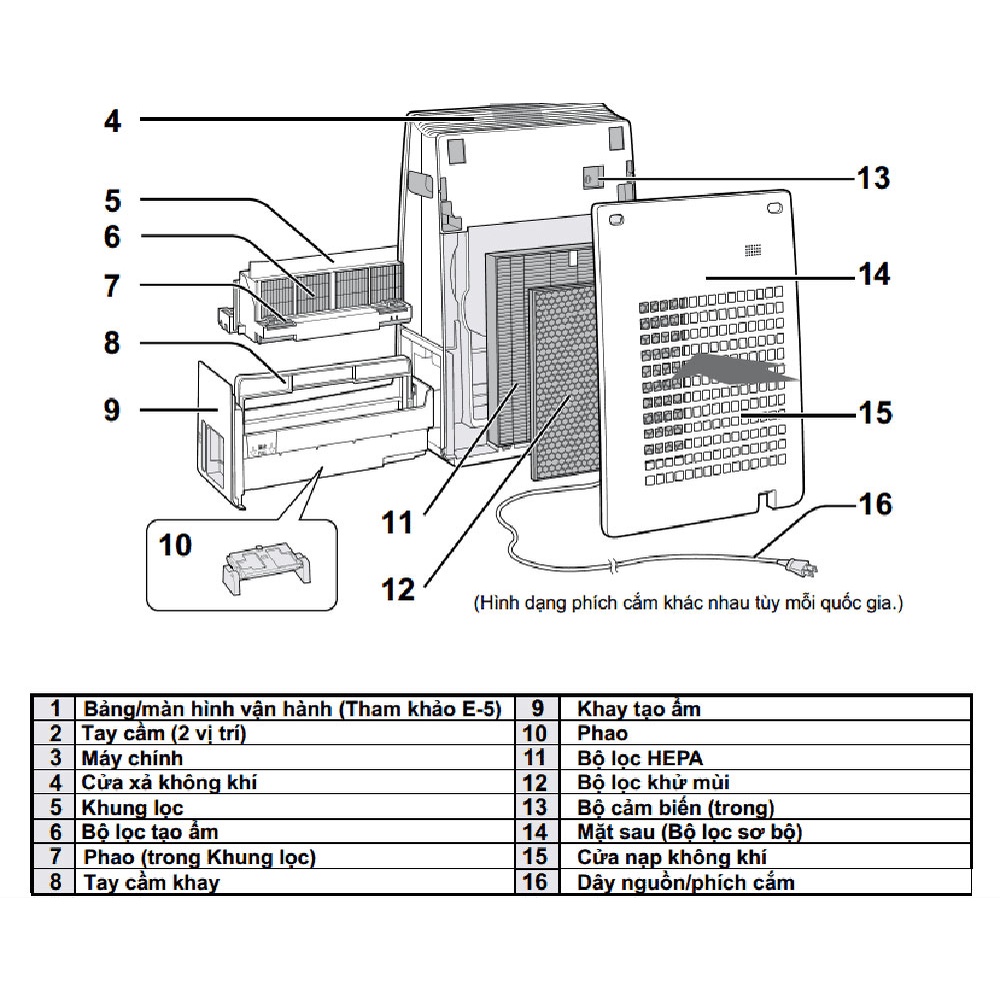 • Lưu ý đối với Máy lọc không khí tạo ẩm Sharp: