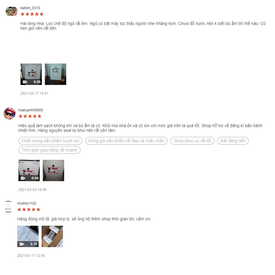 - Chế độ cảm biến: bụi, mùi và độ ẩm
