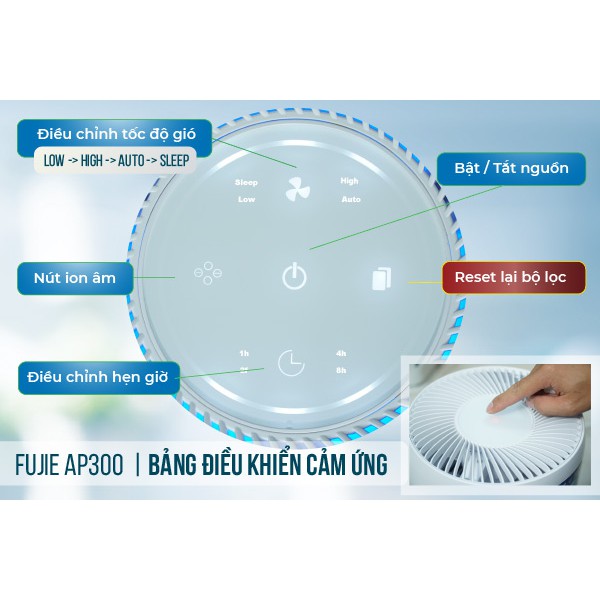 Giới thiệu Máy lọc không khí thông minh FujiE AP300 (kết nối Wifi, HEPA 3M-Mỹ, 4 cấp lọc,dùng phòng:12-20m2) Chính hãng