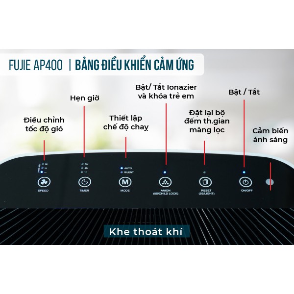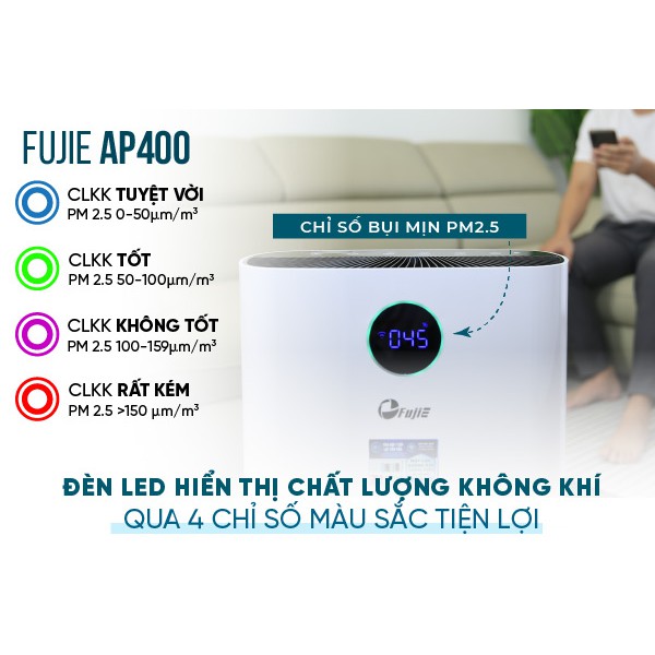 Thiết Bị Điện Gia Dụng > Thiết bị điện gia dụng nhỏ > Thiết bị xử lí không khí > Máy lọc không khí || Máy lọc không khí thông minh kết nối Wifi FujiE AP400 (7 màng lọc,màng Hepa3M-Mỹ) cho phòng từ 28-48mCòn hàng