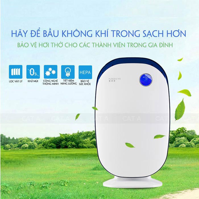 Máy lọc không khí trong nhà PURERAINS cao cấp 4 lớp không gian rộng, khử mùi,diệt khuẩn hiệu quả - BH 12 tháng