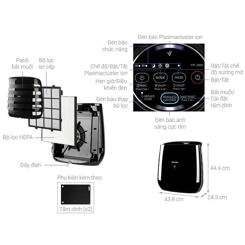 Giới thiệu [Mã ELHA22 giảm 5% đơn 300K] Máy Lọc Không Khí Và Bắt Muỗi Sharp FP-JM30V-B – Hàng Chính Hãng