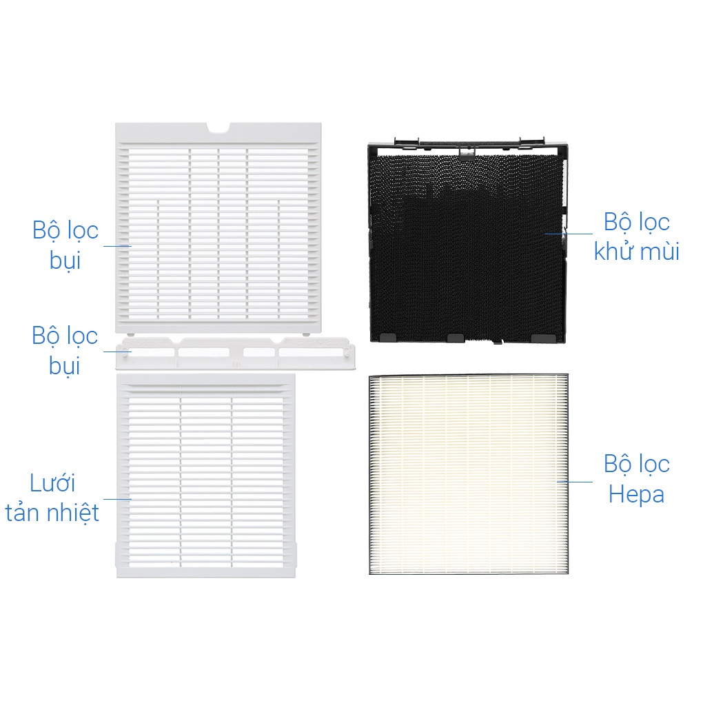 - Phin lọc tĩnh điện HEPA lọc bụi hiệu quả hơn nhờ vào lực tĩnh điện, loại bỏ 99,97% các hạt bụi có kích thước 0.3 μm
