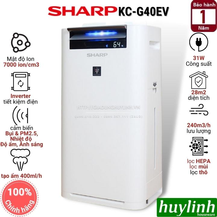 Máy lọc không khí Sharp KC-G40EV-W với công nghệ Inverter tiết kiệm điện, phù hợp với diện tích từ dưới 28m2, vừa lọc không khí vừa kết hợp tạo ẩmHuy Linh phân phối và bảo hành chính hãng tại Sharp toàn quốc.