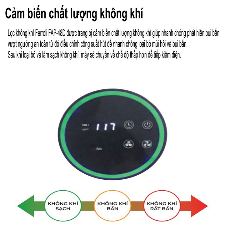Máy lọc không khí và tạo ion, diệt khuẩn Ferroli FAP-48D, bảo hành 12 tháng