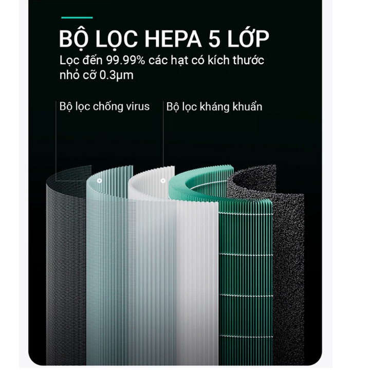 -Bộ lọc: Màng lọc HEPA, Màng lọc than hoạt tính, Màng lọc thô