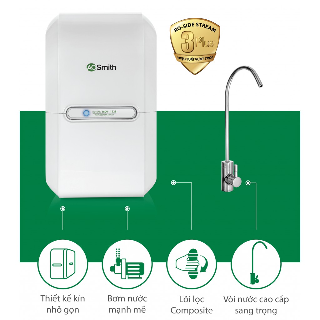 Máy lọc nước AOSmith RO M1, lõi lọc tuổi thọ cao, nguyên khối, bơm mạnh mẽ, nước lạnh, thiết kế nhỏ gon