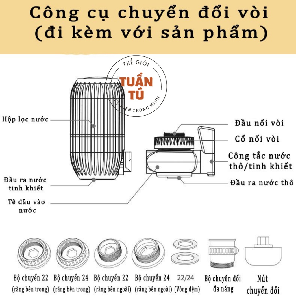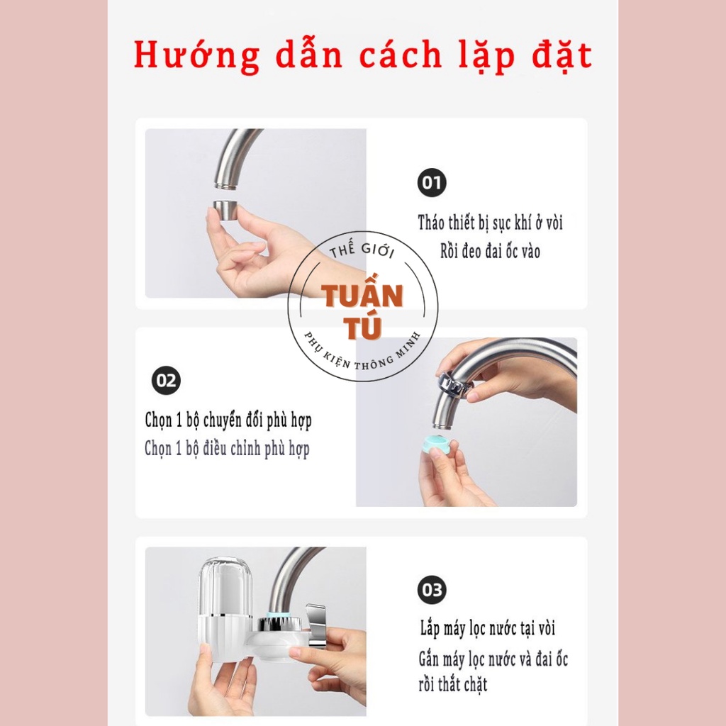 - Lọc nước tại vòi được lắp đặt khá là đơn giản bạn chỉ mất 5 phút có ngay nước sạch. Sản phẩm lọc nước tại vòi có thiết kế phù hợp với 99% các loại vòi nước tại Việt Nam