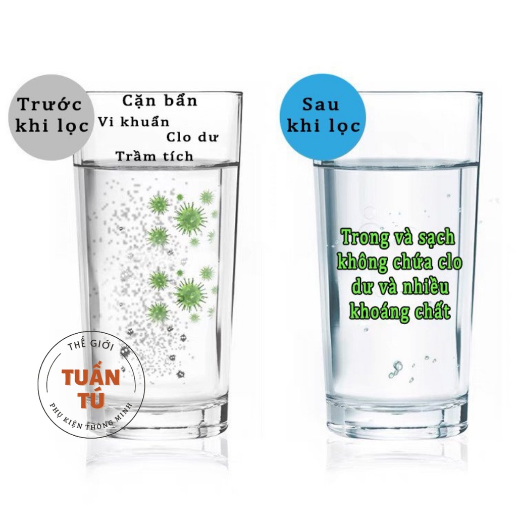 - Lọc hiệu quả các tạp chất dạng hạt và clo, diều chỉnh độ pH. Giữ lại các vi lượng cần thiết có lợi cho sức khỏe con người. Chất lượng nước sau lọc cực kỳ đảm bảo cho sức khỏe con người.