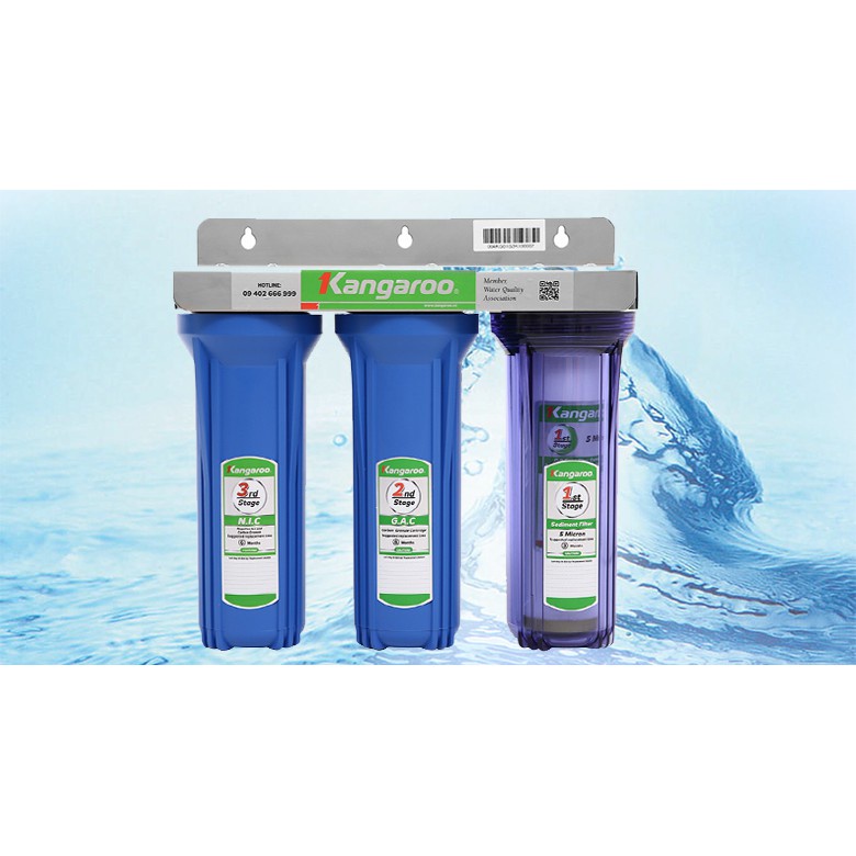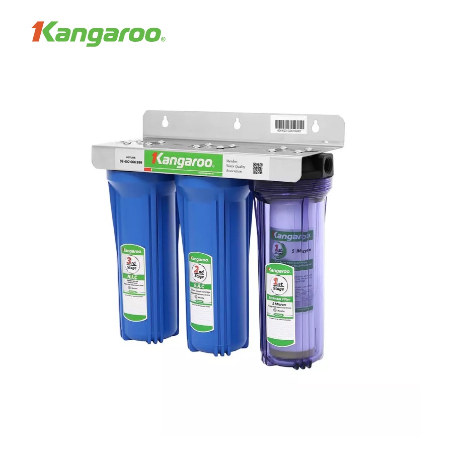 Bộ cốc lọc đầu nguồn Kangaroo với hệ thống 3 cốc lọc làm sạch nước đầu nguồn hiệu quả trước khi đưa vào máy lọc nước RO