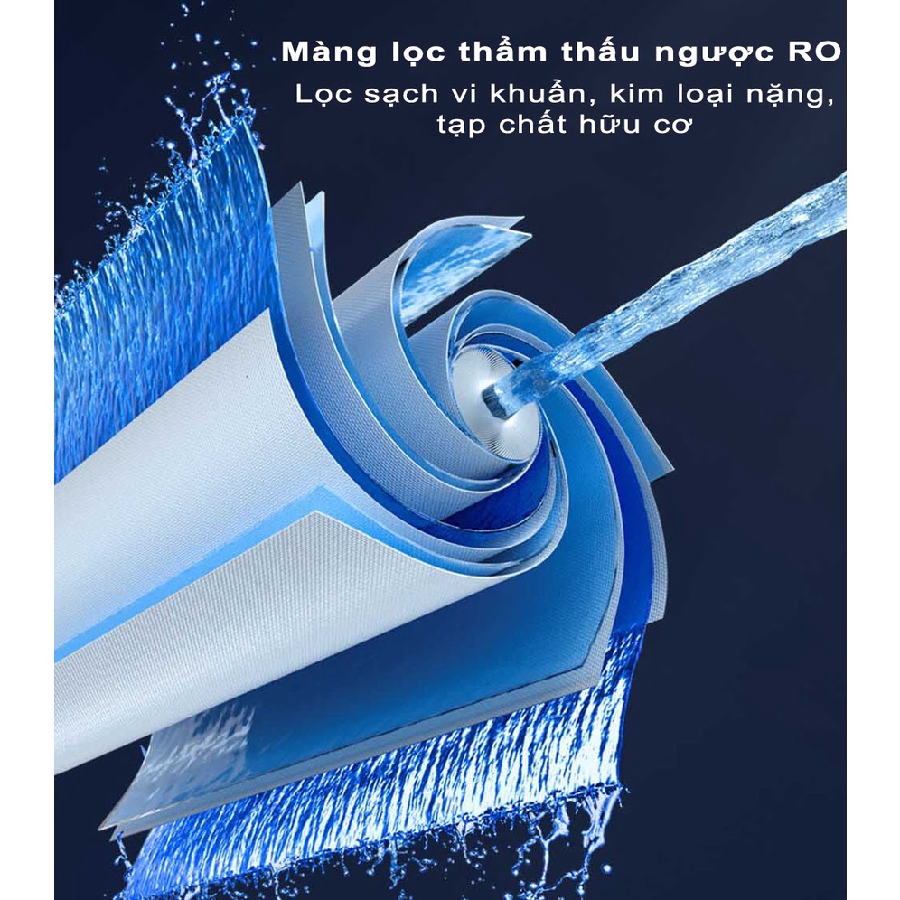 Hệ thống lọc 6 lớp được trang bị, giúp mang đến nguồn nước tinh khiết hơn, lõi lọc bền hơn, không có cặn, tốt cho sức khỏe. Cụ thể, lớp lọc PP đầu tiên cho hiệu quả lọc tối ưu các hạt lớn như cát, rỉ sét,... Lớp than hoạt tính thứ 2 hấp thụ clo dư, khử mùi và màu. Lớp lọc thứ 3 được bổ sung chất ức chế, giúp giảm cặn và kéo dài tuổi thọ của màng RO. Lớp lọc RO thứ 4 loại bỏ vi khuẩn, vi trùng và kim loại nặng. Lớp lọc thứ 5 cải thiện mùi vị nước và lớp lọc thứ 6 ngăn chặn than hoạt tính kết tủa, cho đầu ra chuẩn nước tinh khiết.