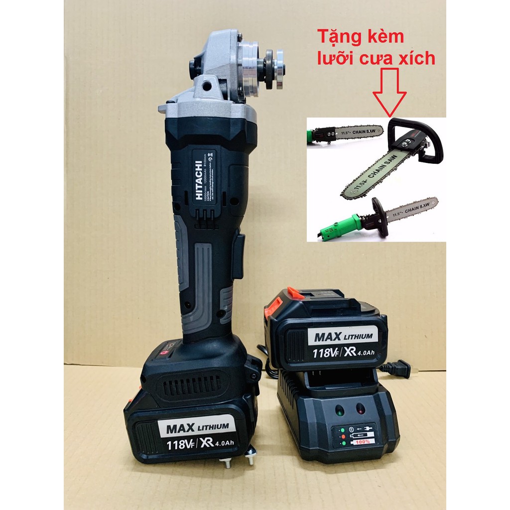 Máy mài máy cắt dùng pin hitachi, động cơ day đồng 100% bộ sản phẩm 3 trong 1 kèm lưỡi cưa xích