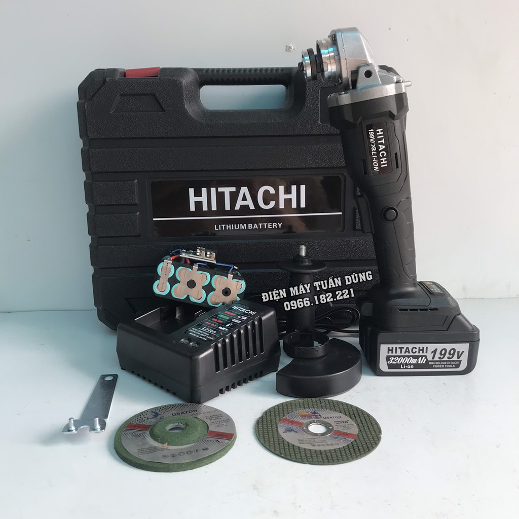 Nhà cửa & Đời sống > Dụng cụ & Thiết bị tiện ích > Dụng cụ > Cưa, máy cắt & máy mài || Máy mài cầm tay chạy pin Hitachi 199V - 2 PIN 32000mAh - Động cơ không chổi than - 100% Đồng TẶNG 1 ĐÁ MÀI VÀ 1 ĐÁ CẮTCòn hàng
