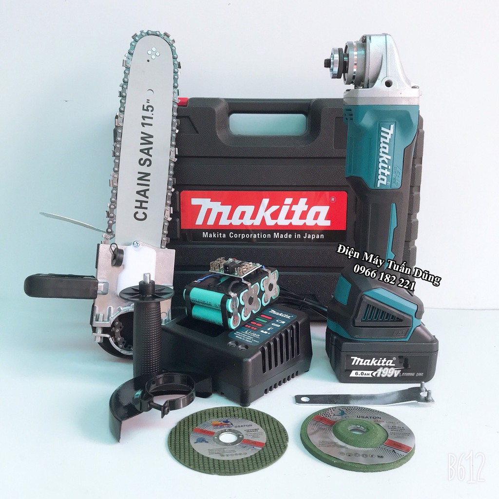 Nhà cửa & Đời sống > Dụng cụ & Thiết bị tiện ích > Dụng cụ > Cưa, máy cắt & máy mài || Máy mài cầm tay pin Makita 199v, 2 pin 20000mAh, 3 tốc độ, không chổi than, tặng lưỡi cưa gỗ và đá mài, đá cắtCòn hàng