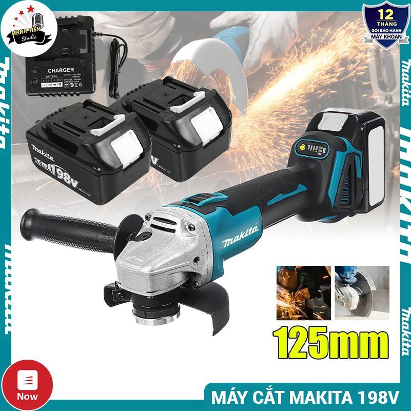 Máy mài, cắt Makita 198V (AG125DWE) – Máy mài góc, máy cắt cầm tay dùng pin – 2 pin 10 cell 1 sạc – Đầu 12.5mm–3 chế độ