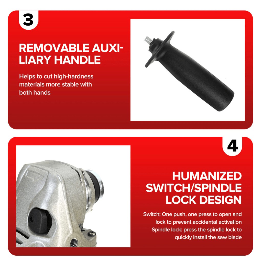 Ngoài việc được trang bị môtơ mạnh mẽ với công suất mạnh mẽ, máy còn có đầu thân nhỏ giúp thuận tiện hơn khi làm việc ở những phạm vi nhỏ, hẹp cũng như đảm bảo an toàn tối đa cho người sử dụng.