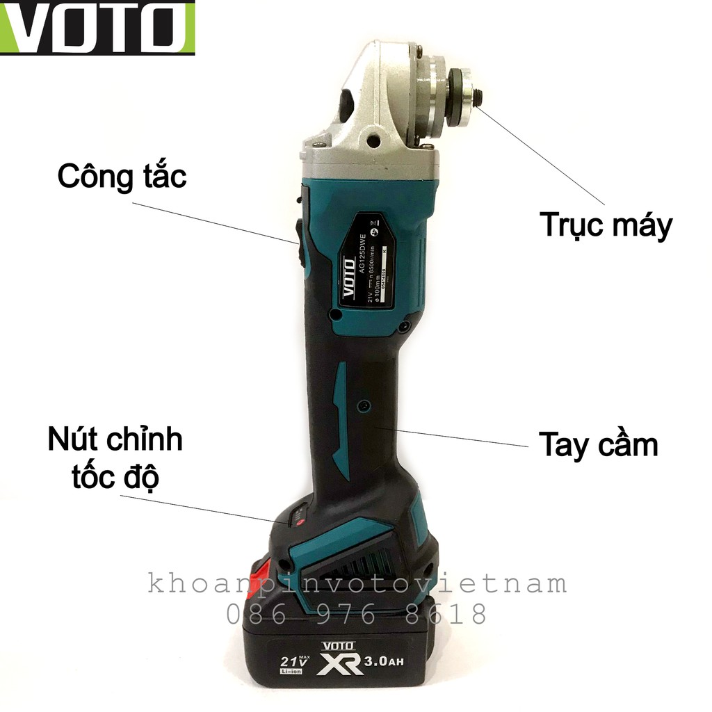 Giới thiệu Máy mài cắt pin Voto không chổi than trục 10mm 12.5mm công tắc trượt sạc đế có pin dự phòng (màu xanh)