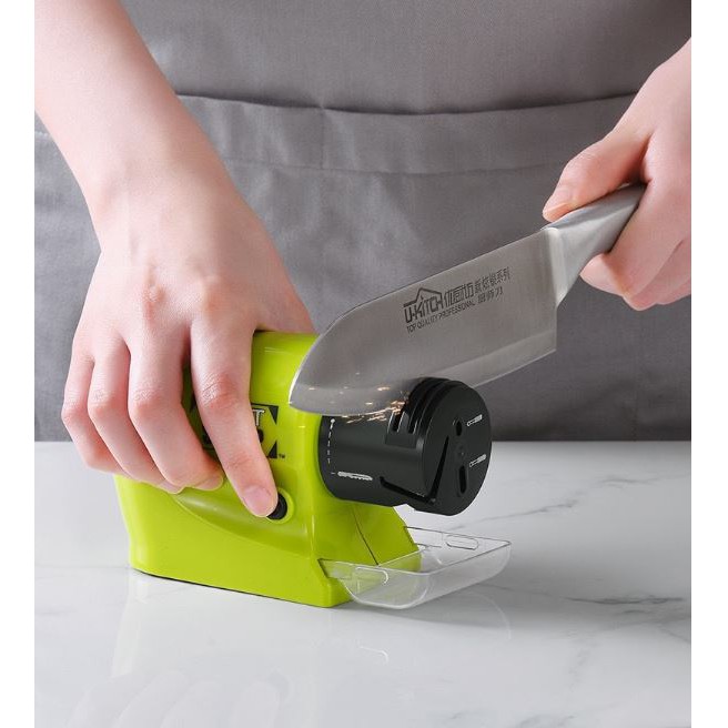 Dụng cụ mài dao kéo đa năng được thiết kế độc đáo giúp giữ lưỡi dao ở góc độ hoàn hảo, các đá mài được quay với tốc độc cao giúp mài lưỡi dao một cách nhanh chóng. Bề mặt khay ở dưới được thiết kế để hứng vụn, sỉ rơi một cách tiện lợi và sách sẽ.