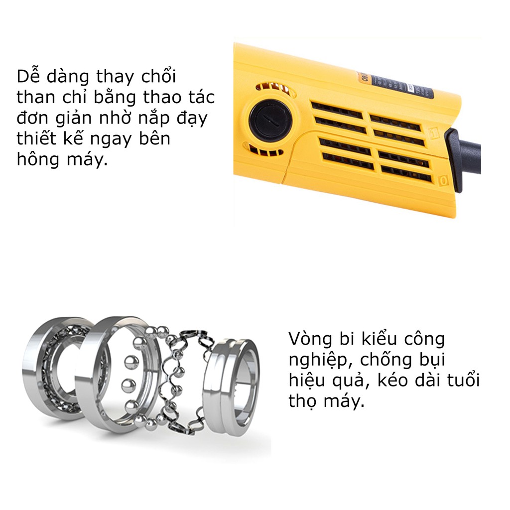 - Máy với các khớp khóa dĩa được thiết kế linh hoạt, việc thay thế các dĩa mài vô cùng đơn giản và thuận