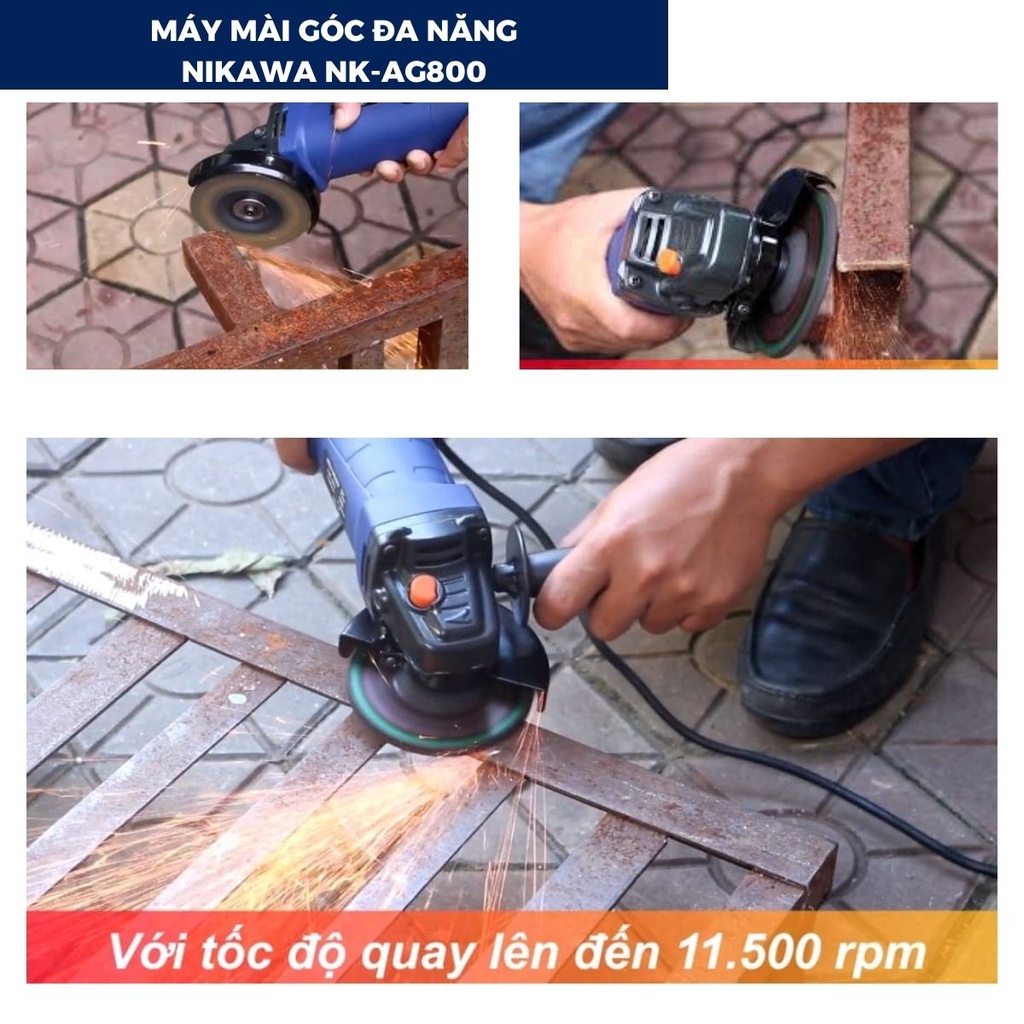 1. Tính năng nổi bật của máy mài góc cầm tay Nikawa AG-800- Công suất lớn 700, 800W cho đường mài luôn mượt, chính xác.