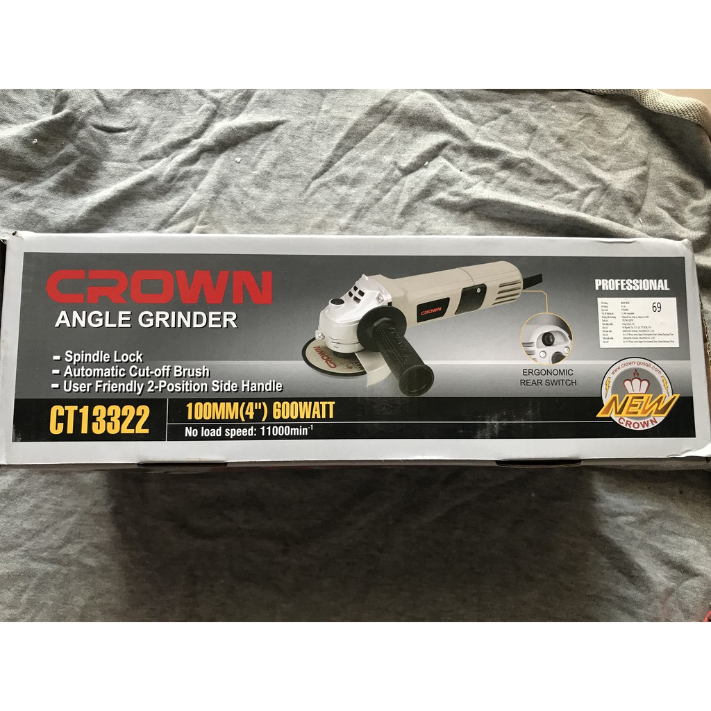 Nhà cửa & Đời sống > Dụng cụ & Thiết bị tiện ích > Dụng cụ > Cưa, máy cắt & máy mài || MÁY MÀI GÓC CHÍNH HÃNG CROWN CT13322 TAY NGẮN 600WCòn hàng