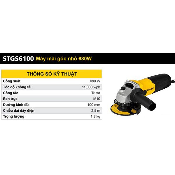 Nhà cửa & Đời sống > Dụng cụ & Thiết bị tiện ích > Dụng cụ > Cưa, máy cắt & máy mài || Máy mài góc Stanley STGS6100-B1 (Công tắc trượt)Còn hàng
