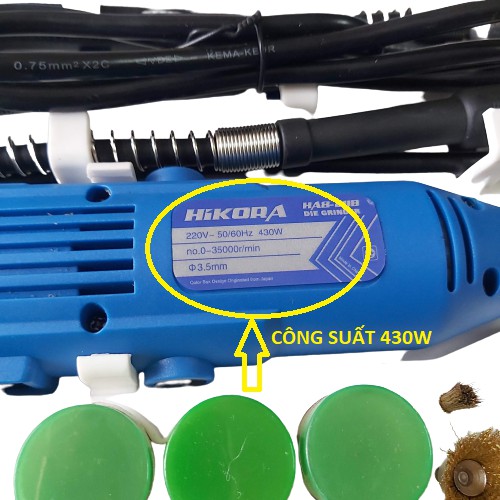 Bộ máy mài khắc mỹ nghệ đa năng kèm bộ đồ nghề 100 chi tiết gồm đầu máy 3.5mm , sử dụng được các loại mũi khoan từ 1.5mm - 2.3mm - 3.2mm Tốc độ vòng quay 0 - 35000 vòng/ phút Điện áp 220V - 50 Hz Máy ruột đồng 100%, có 6 mức tốc độ, máy chạy êm, bền, không hay hư vặt như các dòng máy khác. Bộ máy mài khắc mỹ nghệ đa năng kèm bộ đồ nghề 100 chi tiết đi kèm với 1 hộp dụng cụ full đồ nghề gồm : các loại mũi khắc , mài với các đầu mũi kích cỡ khác nhau, giấy ráp đã cuộn tròn, phớt dạ đánh bóng, các đầu đá mài, chổi đánh gỉ sét đánh bóng, lưỡi cắt, si đánh bóng, mâm cặp mũi khoan, cờ lê, tô vít, 1 dây dẫn động giúp bạn dễ dàng gia công đối với những chi tiết nhỏ và cần độ tỉ mỉ chính xác ... Bộ máy mài khắc mỹ nghệ đa năng kèm bộ đồ nghề 100 chi tiết được sử dụng để làm trong các lĩnh vực như điêu khắc, làm lũa gỗ, mài cắt, khoan các dụng cụ sắt gỗ, đá có kích thước nhỏ, cần độ chính xác cao trên nhiều loại chất liệu như nhựa gỗ, kim loại, thủy tinh...