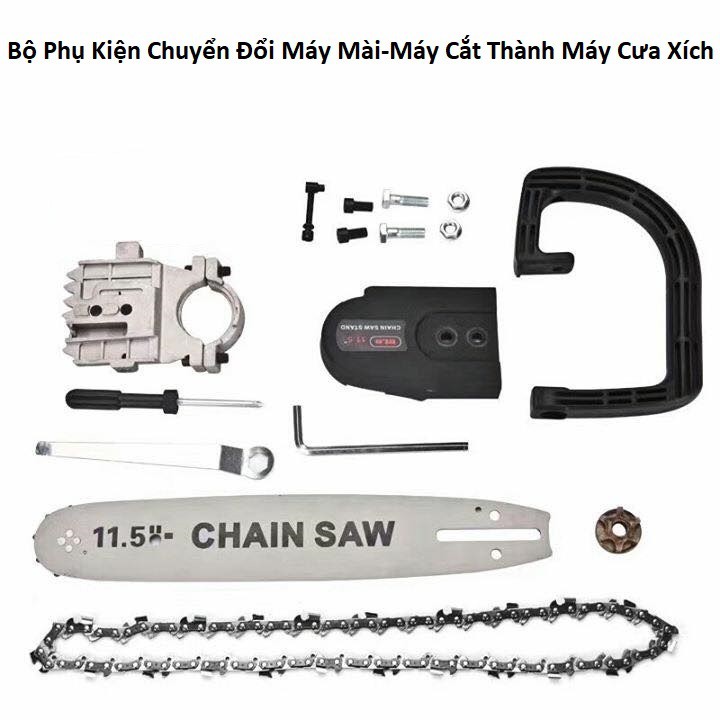 Quý khách có thể tùy lựa chọn mua thêm phụ kiện lưỡi cưa xích và phụ kiện bộ đế máy cắt bàn dùng cho máy cầm tay