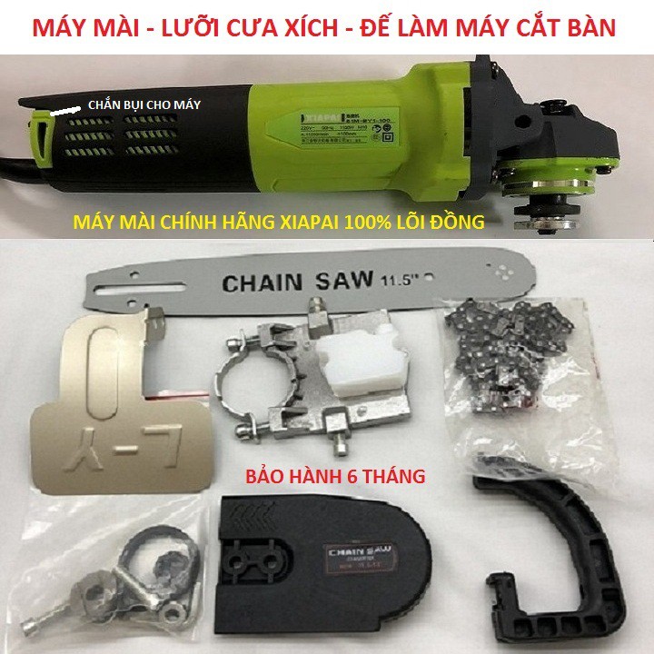 Máy mài góc, máy cắt cầm tay Chính Hãng XIAPAI 1100w Model S1M-BY1-100 có hiệu suất làm việc cao nhờ mô tơ 100% lõi đồng 1100W mạnh mẽ. lên quý khách có thể lắp thêm phụ kiện, như lưỡi cưa xích hoặc lắp vào đế máy cắt bàn dùng rất khỏe và tiện dụng