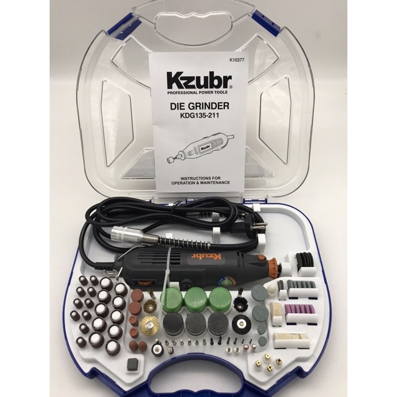 ►Máy mài khuôn khắc mỹ nghệ KZUBR 100 món chuyên dùng để mài,chà nhám, đánh bóng, điêu khắc hay cắt các vật dụng như ống nước, chai, lọ... một cách nhanh chóng và tiện lợi.