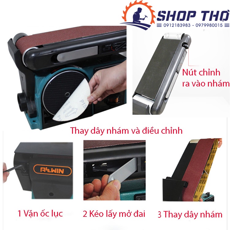 - Là dòng máy mài nhám 2 trong 1: Nhám đai và nhám đĩa
