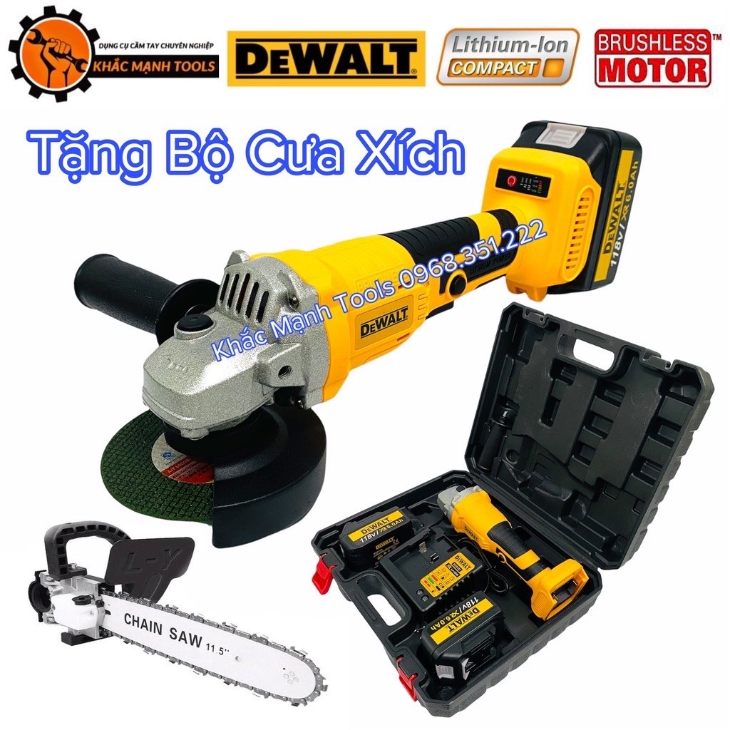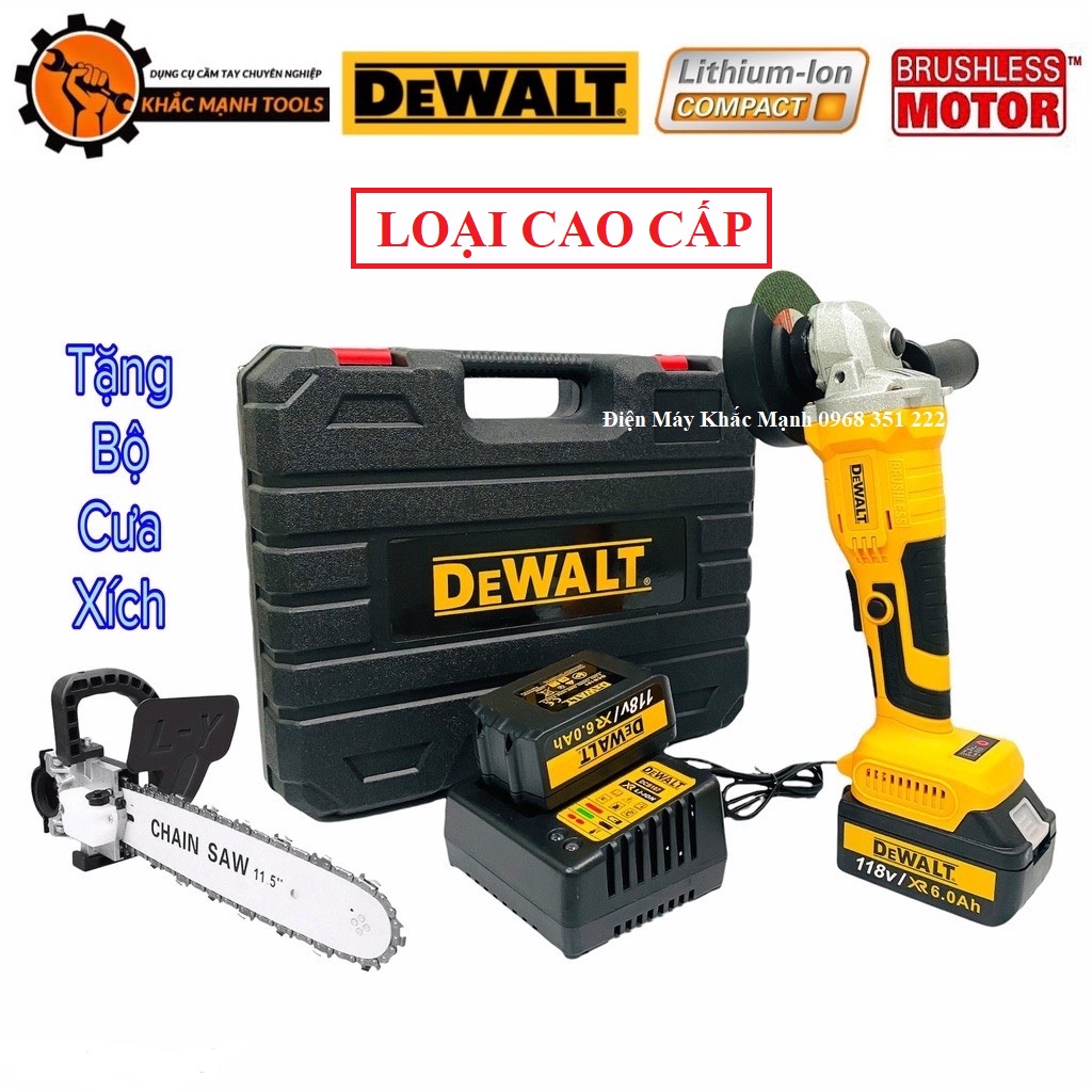 Máy Mài Pin DeWaLT Cao Cấp - Tặng Bộ Lam Xích, Động Cơ Không Chổi Than ( Công Tắc Bóp)