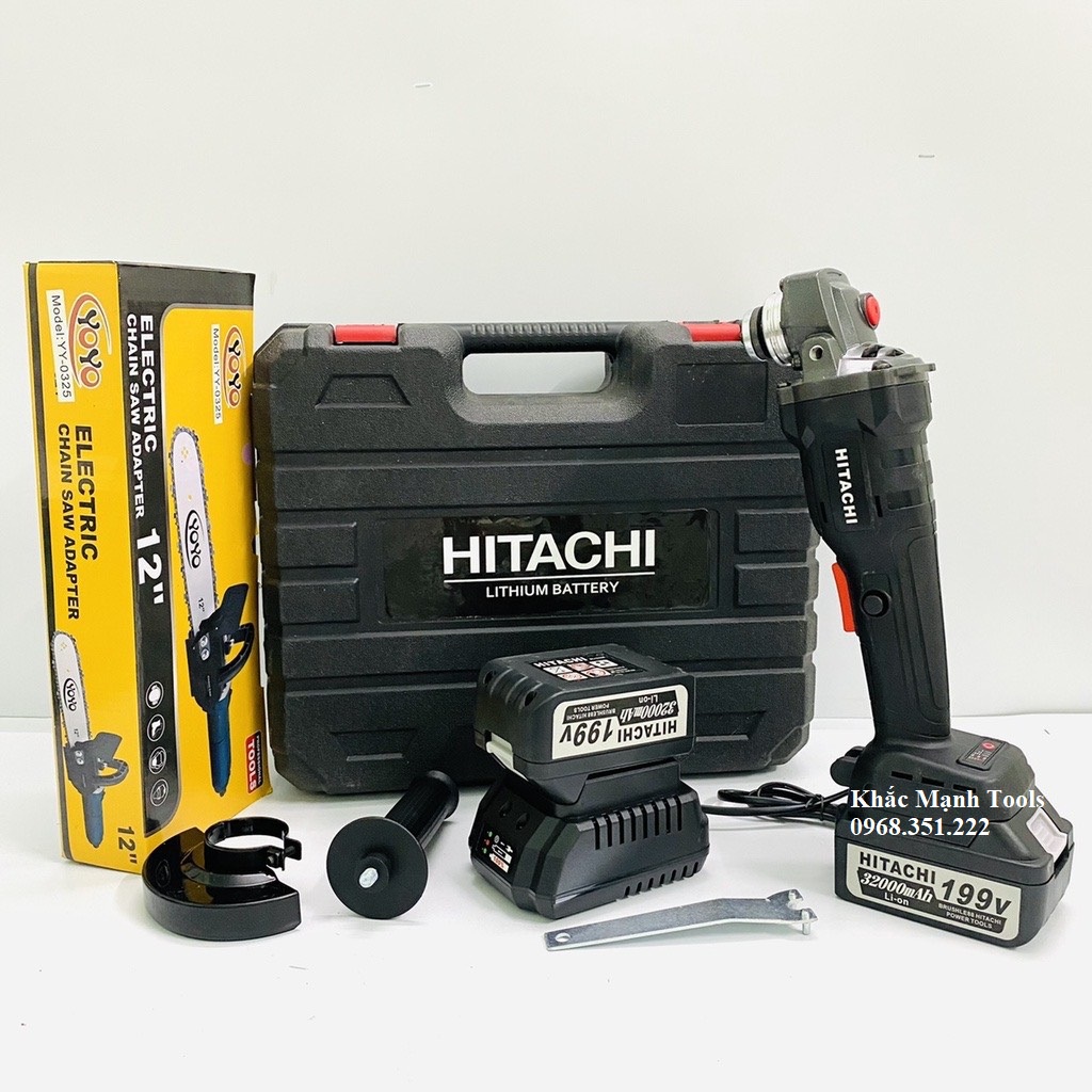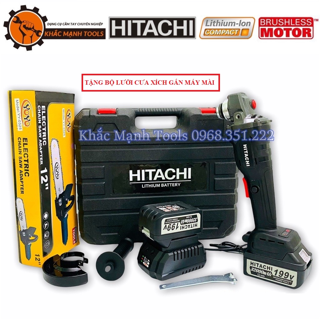 Máy Mài Pin HITACHI 199V Tặng Bộ Lưỡi Cưa Xích Gắn Máy Mài