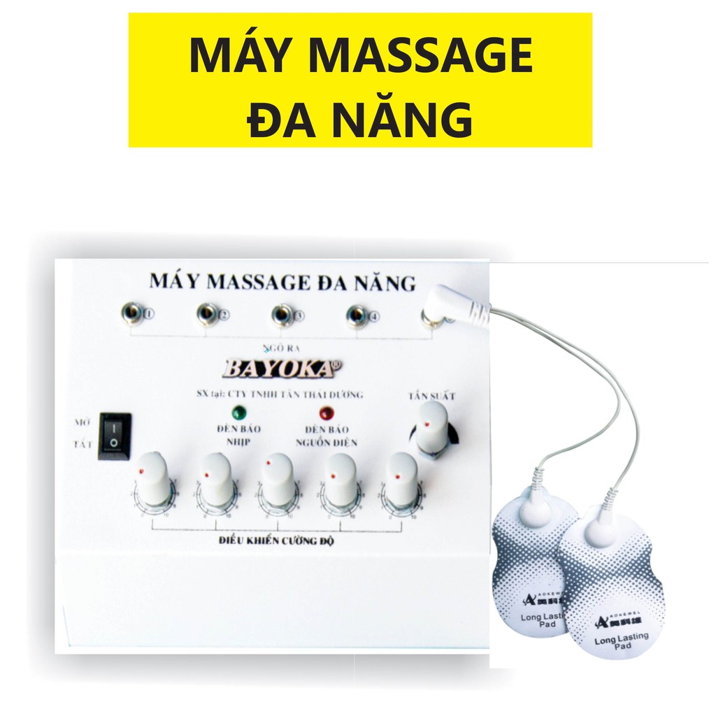 - Thông qua kỹ thuật tiên tiến, các chương trình vi điện của máy Massage đa năng tổng hợp bảy dòng điện sinh học, năng lượng cao tác động trực tiếp đến các huyệt ở bề mặt cơ thể hay các huyệt không cố định ở vùng bị ảnh hưởng, kích thích các huyệt đạo mang hiệu quả kháng viêm, giảm sưng bằng cách ức chế thần kinh giao cảm, giản mạch tăng cường tuần hoàn, tăng sức mạnh của các thực bào của mô và niêm mạc, cùng lúc đó, dòng điện mạch năng lượng cao có thể kích thích cơ thần kinh để cơ duỗi ra và tình trạng này có thể giảm đi một cách hiệu quả mỏi mệt và góp phần giải quyết tình trạng liệt và tổn thương với thần kinh ngoại biên.