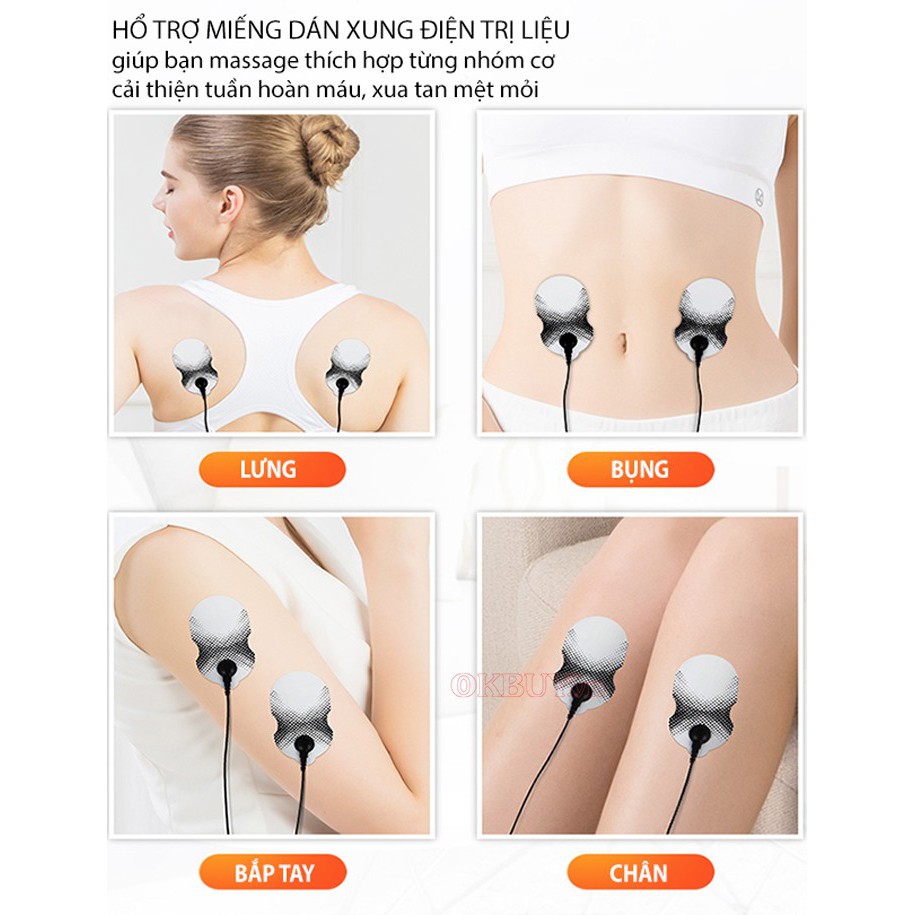 Ấn nút M 2 cái nếu bạn muốn chuyển sang chế Massage xung điện miếng dán. Tùy chỉnh cường độ bằng nút - và +