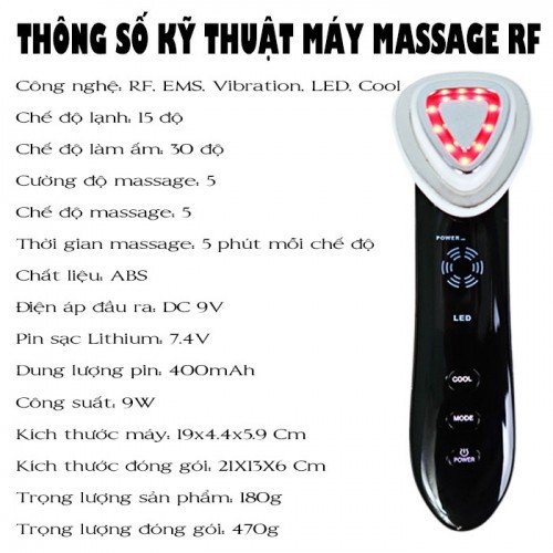 Thông số kỹ thuật của Máy Massage điện di RF chăm sóc, làm đẹp và trẻ hóa mặt: