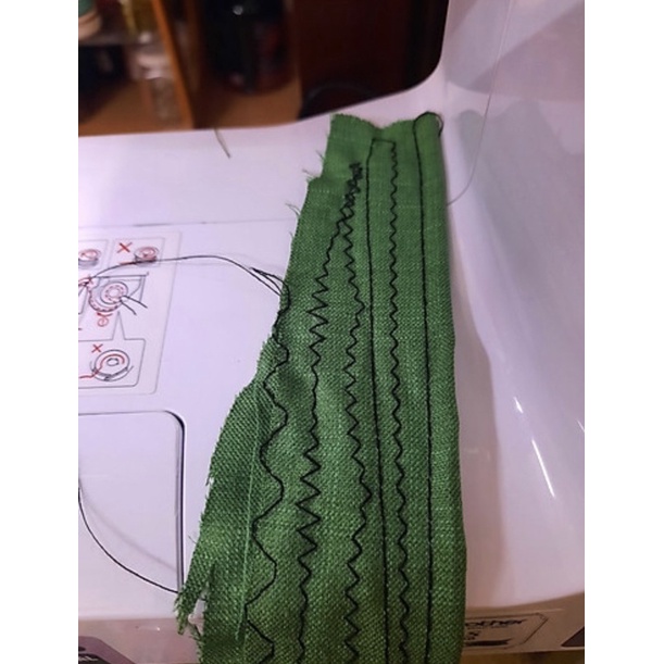 Bước 3: Cầm cả sợi chỉ trên và dưới kéo ra ngoài 10 cm đặt về phía sau. Chỉ trên nên đặt ở phái dưới và giữa chân vịt.